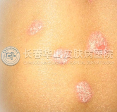 2、脸部牛皮癣症状:大多呈点滴状或指甲大小.浸润性红色丘疹或红斑,因每日洗脸,鳞屑较薄或无鳞屑。
