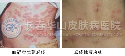9、血清病性荨麻疹:由于药物(青霉素、痢特灵等)、疫苗或异体血引起。皮损以风团尤其是多环形风团常见,还可有中毒性红斑、结节性红斑样表现。