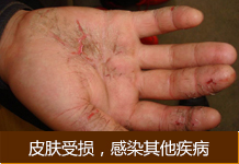 因为皮炎病发部位出现的破损,如颈部,胳膊关节、肘后或者其他暴露部位,都易受到细菌感染引发其他疾病。并且由于瘙痒,病人反复搔抓后使局部出现苔藓化肥厚改变,也更易因抓破而感染,局部发生脓疱、毛囊炎等。